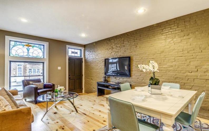 A 1348 sf 1900’s brick row house that was fully gutted and rehabbed into an impeccable 3 bedrooms and 3 bathrooms space. Feature includes: hardwood floors, new kitchen with SS appliances, granite counter and peninsular, roof top deck with view of city and harbour’ off street parking and new façade.